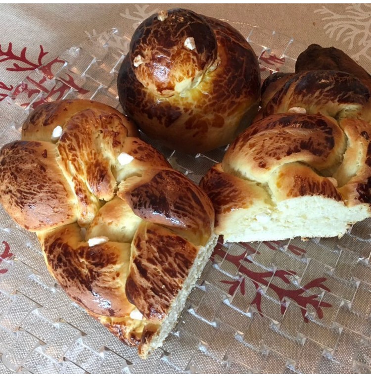 Degas the dough and make either 8 small buns or a large brioche with two strands.