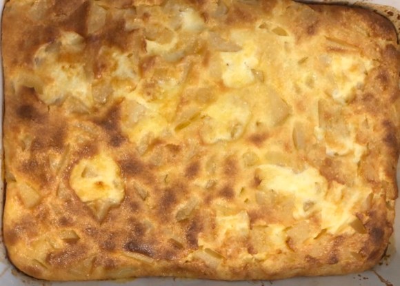 Mix in a bowl the eggs, the milk, the sugar, the flour and the cream with a whisk.