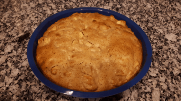Mix all the following ingredients in this order; eggs, sugar, oil, milk, baking powder, cinnamon, flour.