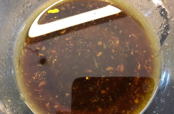 Mix all together: the soy sauce, the rice vinegar, the lemon zest and the juice of a lime.