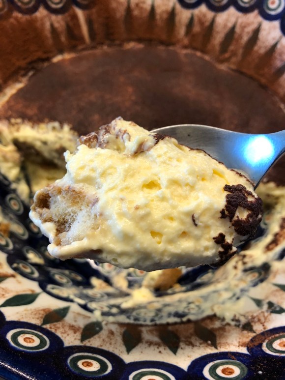 Place another last layer of lady’s finger dipped in the coffee. (If no more coffee make some more).